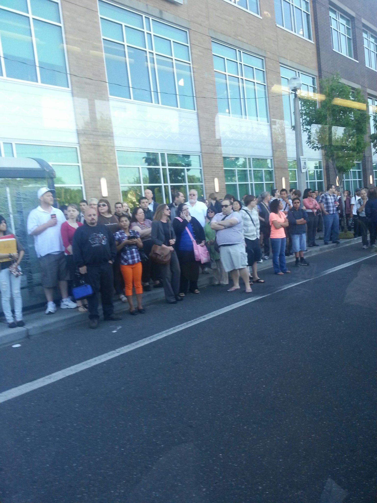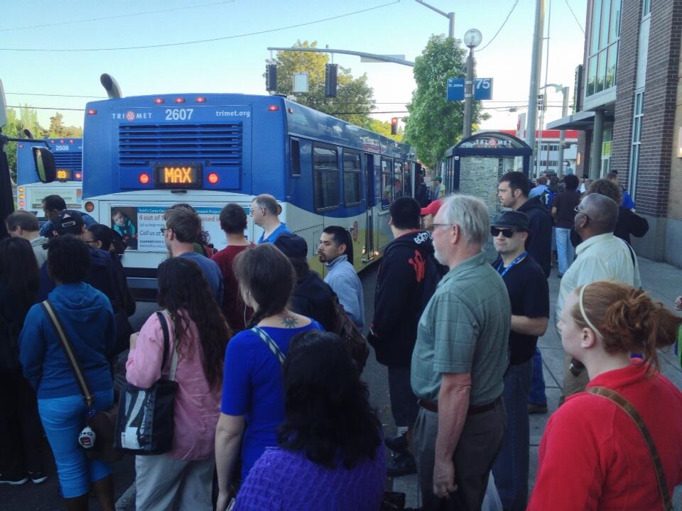 | Dazed commuters searching for shuttle buses at Hollywood TC-pic from KOIN |
