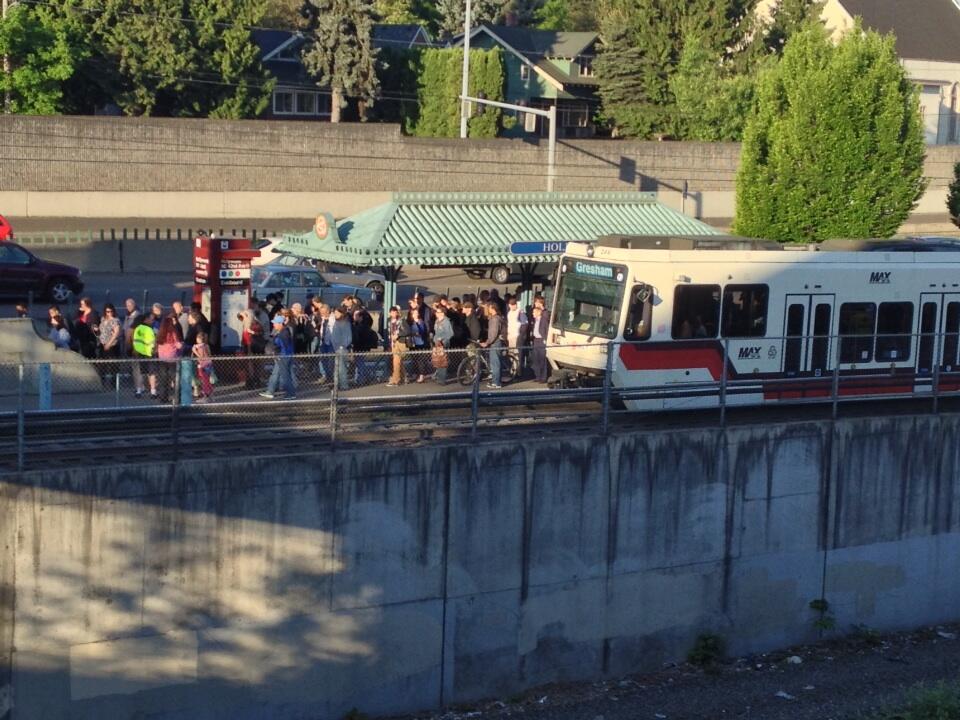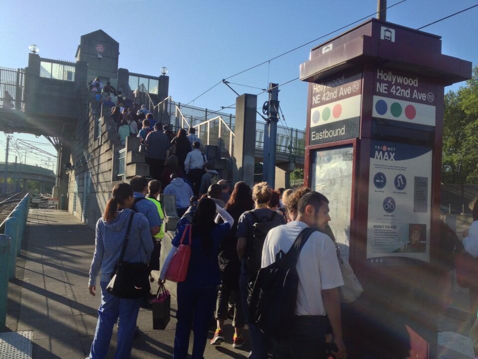 All WESTBOUND MAX trains are being unloaded at Hollywood Transit Center. TriMet asking people to not push and shove. pic.twitter.com/DWu1M1udkl