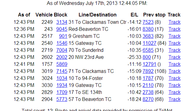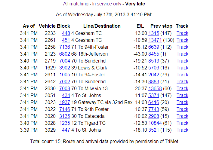 TRIMET SCHEDULE CHECK-VERY LATE BUSES AND TRAINS